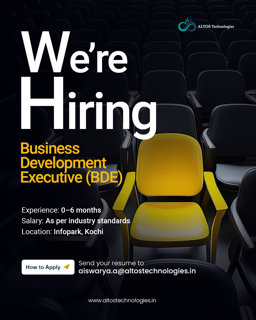 We're looking for a passionate and dynamic Business Development Executive (BDE) to join our team. If you’re energetic, motivated, and eager to start a career in business development, this role is for you! Experience: 0–6 months Salary: As per industry standards Location: Infopark, Kochi Take the next step in your career with a company that values growth, learning, and performance. Join a team where your ideas matter and your contribution creates impact. Click Apply Now or send your resume directly to: aiswarya.a@altostechnologies.in Start your professional journey with ALTOS Technologies!